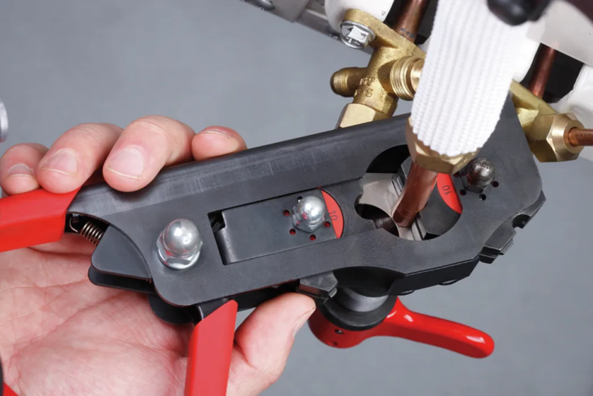 La Maquina de volteo ROFLARE REVOLVER está especialmente concebida para la confección rápida y segura de abocinados simples de 45° en tuberías de cobre blando de Ø 6 – 18 mm, reduciendo fugas y mejorando la conexión en sistemas de refrigeración y aire acondicionado. Su diseño compacto facilita el acceso incluso en espacios reducidos, mientras que su funcionamiento intuitivo aporta rapidez y comodidad a cada operación.